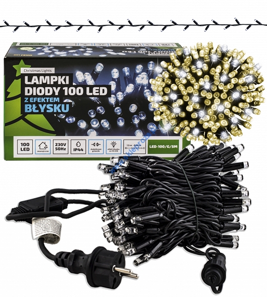 Diody LED 100 pkt. z efektem błysku z dodatkowym gniazdem, biały ciepły+błysk biały zimny, zewnętrzne LED100/G/5M/X
