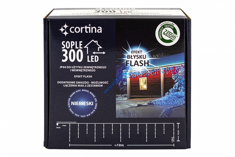 Kurtyna 10,70m 300 LED FLASH, gniazdo, zewnętrzne, niebieski+biały zimny 103/21/FLE/B+CW