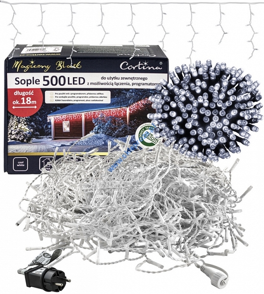 Kurtyna 17,80m 500 LED programator+gniazdo, zewnętrzne, biały zimny 105/20/LED/CW
