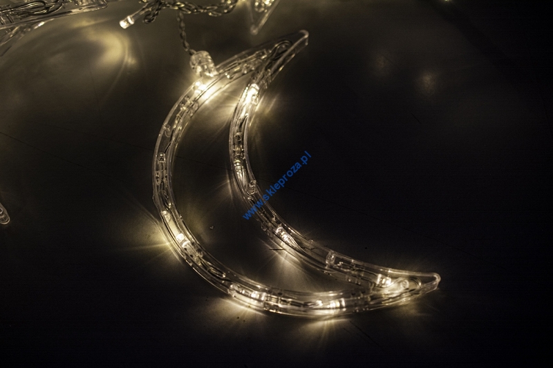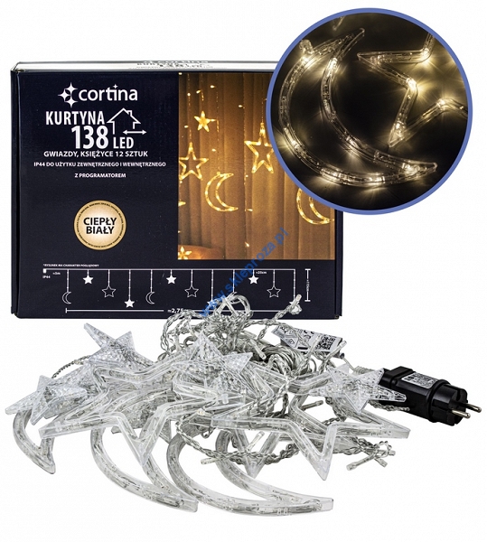 Kurtyna 275 cm 12 FIGUREK GWIAZDY I KSIĘŻYCE 138 LED PROGRAMATOR, zewnętrzne, biały ciepły 3/25/LED/WW