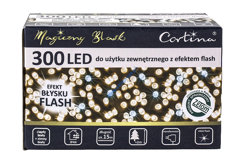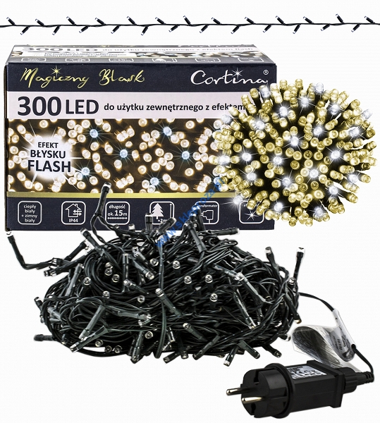 Diody 300 LED z efektem skrzenia, biały ciepły+flash biały zimny, zewnętrzne 3/17/FLE/WW+CW