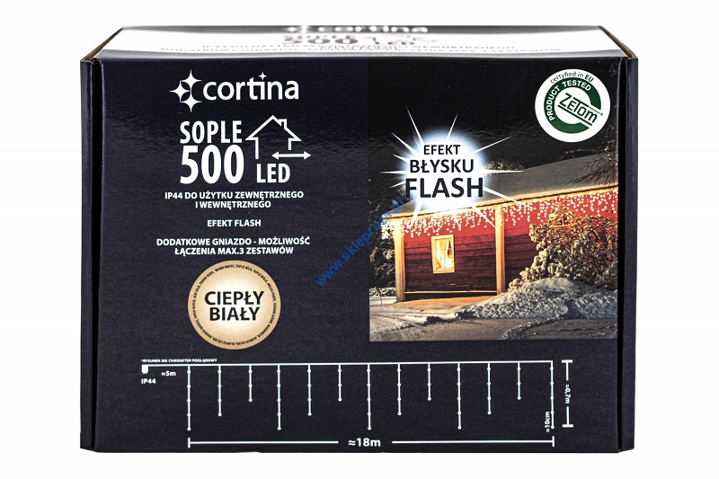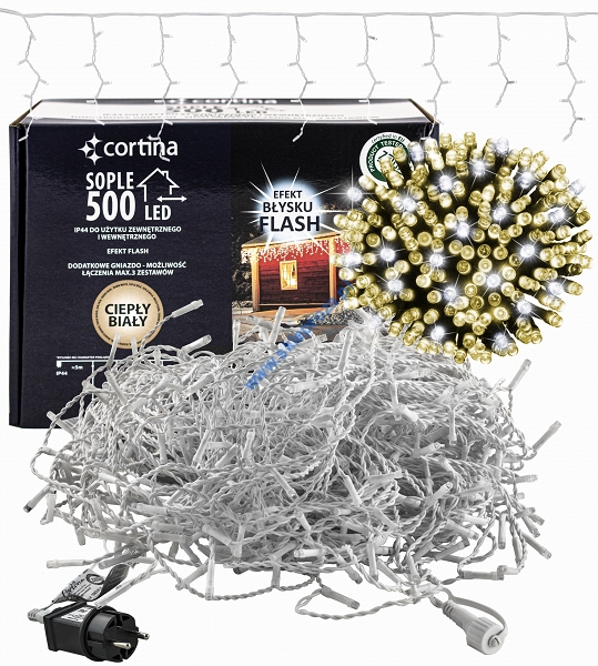 Kurtyna 17,80m 500 LED FLASH, gniazdo, zewnętrzne, biały ciepły+biały zimny 105/21/FLE/WW+CW