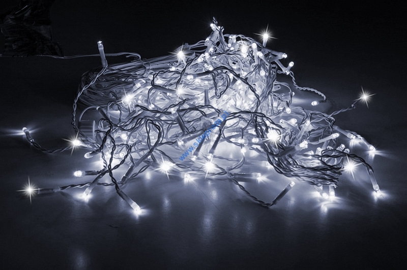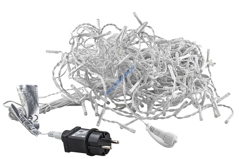 Diody LED Kurtyna z efektem błysku (co 10 dioda miga na biało zimny) z dodatkowym gniazdem (możliwość łączenia kompletów). Na białym przewodzie.