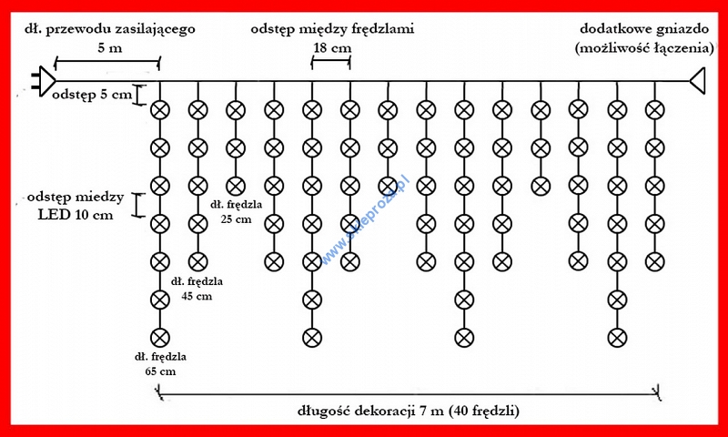 Długość dekoracji: 7 m (od pierwszego do ostatniego frędzelka)