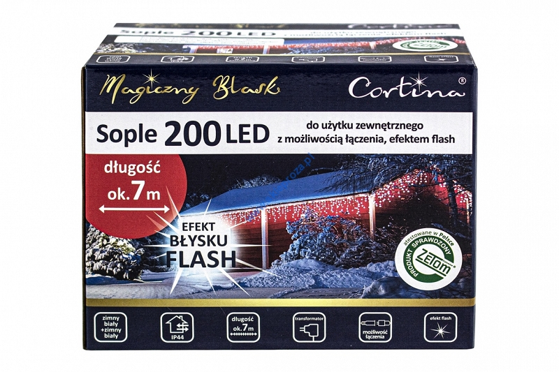 Kurtyna 7m 200 LED FLASH, gniazdo, zewnętrzne, biały zimny + biały zimny 102/21/FLE/CW+CW