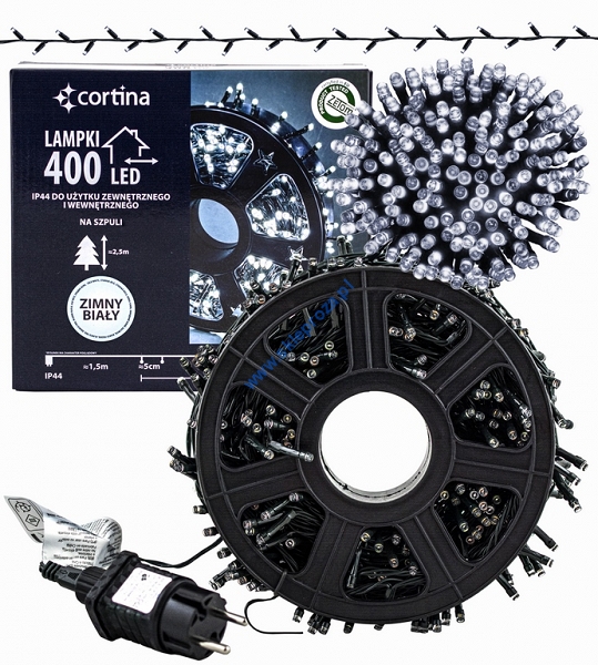 Sznur 20m 400 LED na SZPULI zewnętrzne biały zimny 11/15/LED/CW-SZPULA