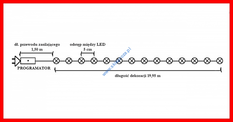 Sznur 20m 400 LED PROGRAMATOR 8 FUNKCJI + PAMIĘĆ, zewnętrzne, multikolor 616/21/LED/M