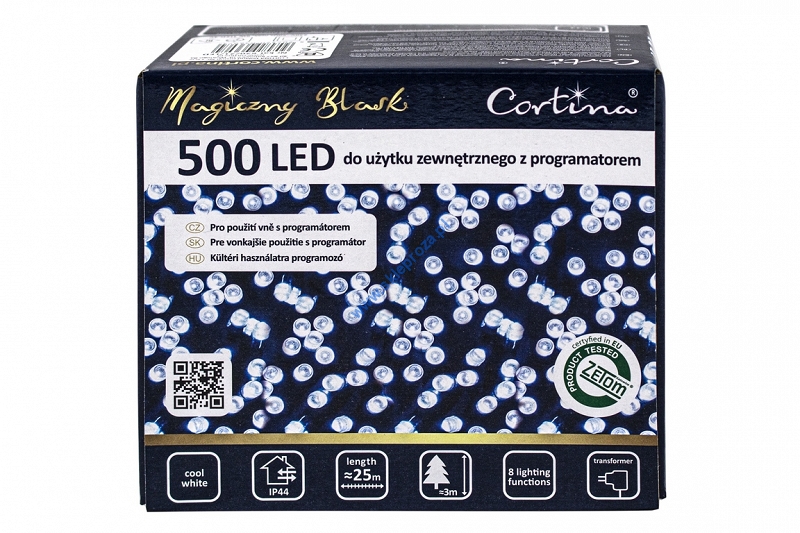 Sznur 25m 500 LED PROGRAMATOR 8 FUNKCJI + PAMIĘĆ, zewnętrzne, biały zimny 620/21/LED/CW