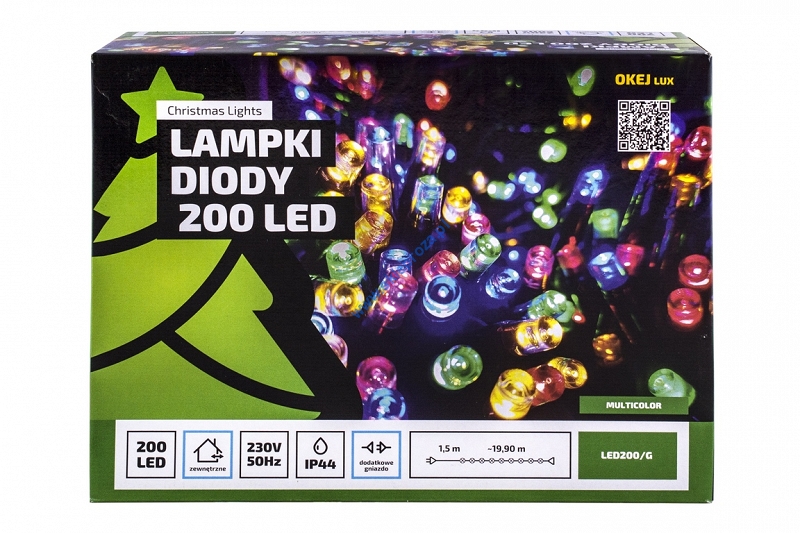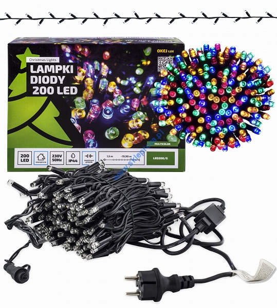 Diody 200 LED - 20 m z dodatkowym gniazdem, multi, zewnętrzne LED200/G/M