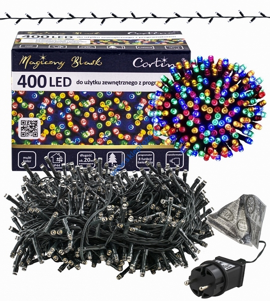 Sznur 20m 400 LED PROGRAMATOR 8 FUNKCJI + PAMIĘĆ, zewnętrzne, multikolor 616/21/LED/M
