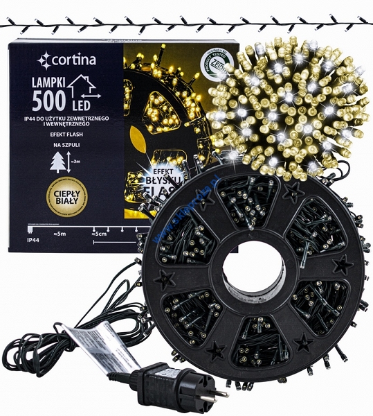 Sznur 25m 500 LED na SZPULI, FLASH zewnętrzne, biały ciepły+biały zimny flash 3/20/FLE/WW+CW-SZPULA