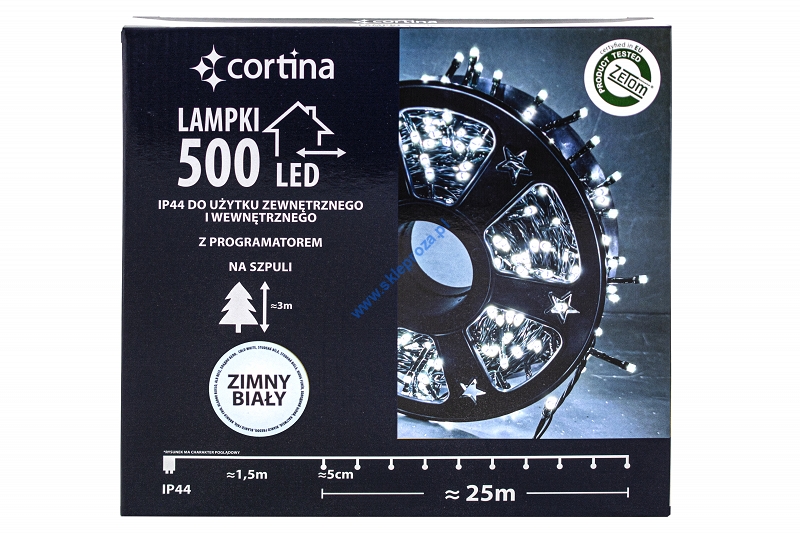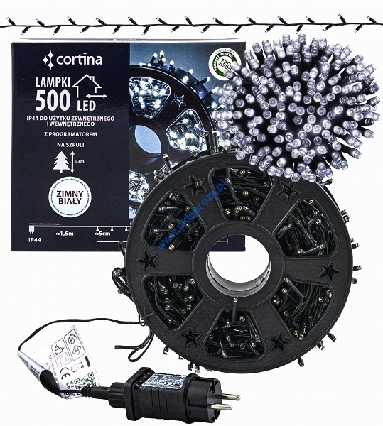 Sznur 25m 500 LED na SZPULI, PROGRAMATOR 8 FUNKCJI + PAMIĘĆ, zewnętrzne, biały zimny 620/21/LED/CW-SZPULA