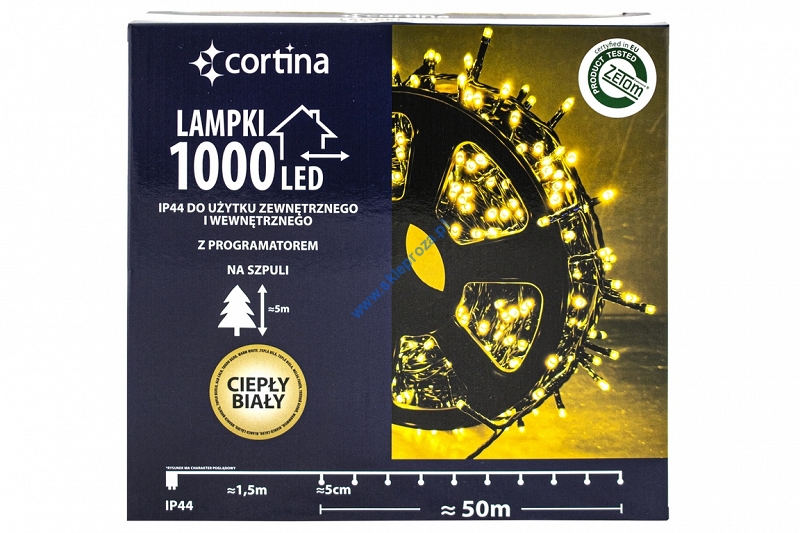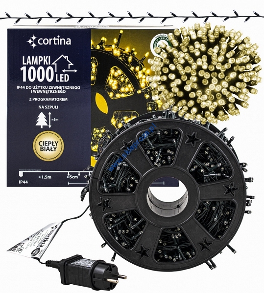 Sznur 50m 1000 LED na SZPULI PROGRAMATOR 8 FUNKCJI + PAMIĘĆ, zewnętrzne, biały ciepły 638/21/LED/WW-SZPULA