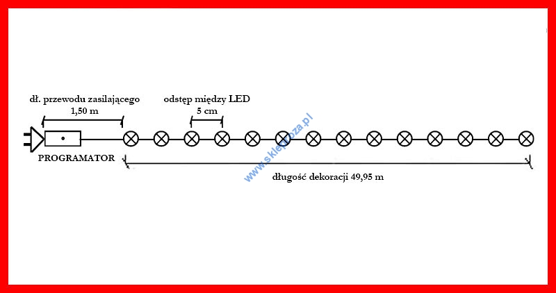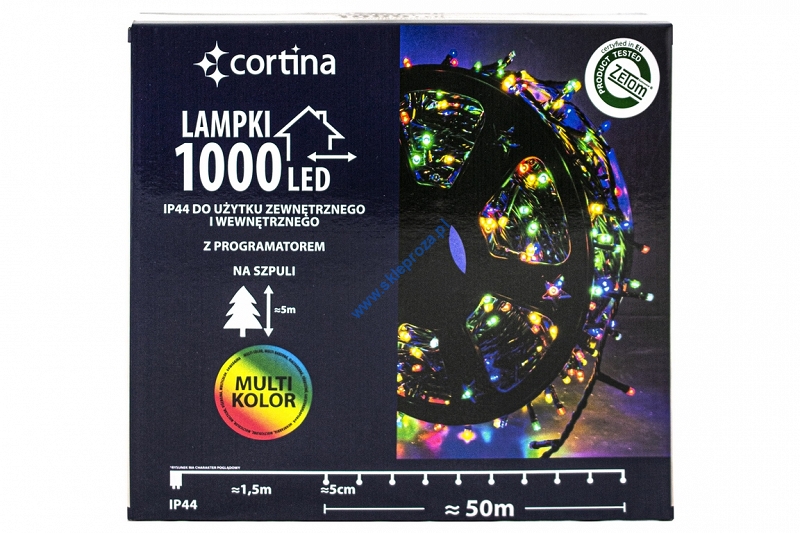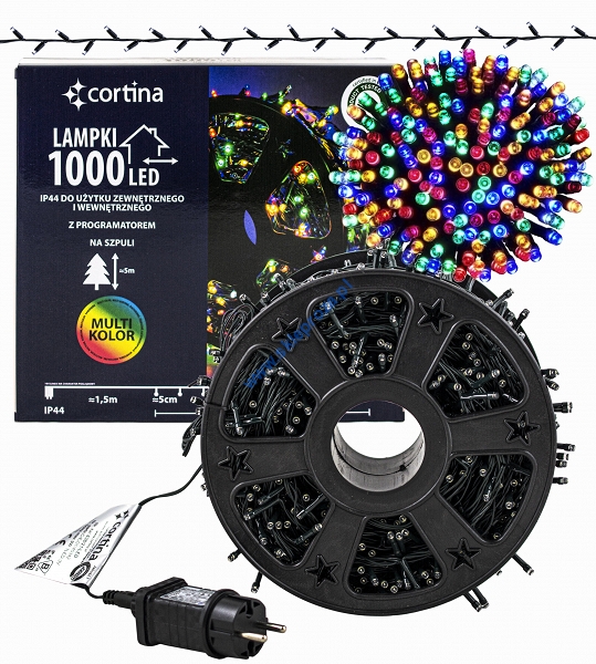 Sznur 50m 1000 LED na SZPULI PROGRAMATOR 8 FUNKCJI + PAMIĘĆ, zewnętrzne, multikolor 638/21/LED/M-SZPULA