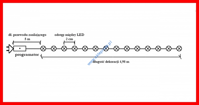 Długość dekoracji: 4,58 m (od pierwszej do ostatniej diody)